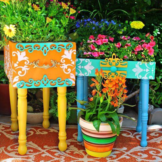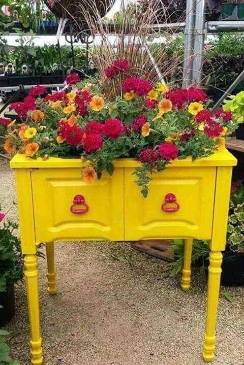- לפני שאתם זורקים רהיט ישן שאלו את עצמכם האם בעבודת שפצור קלה הוא יכול להפוך לפינה פורחת חדשה בגינה